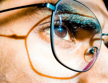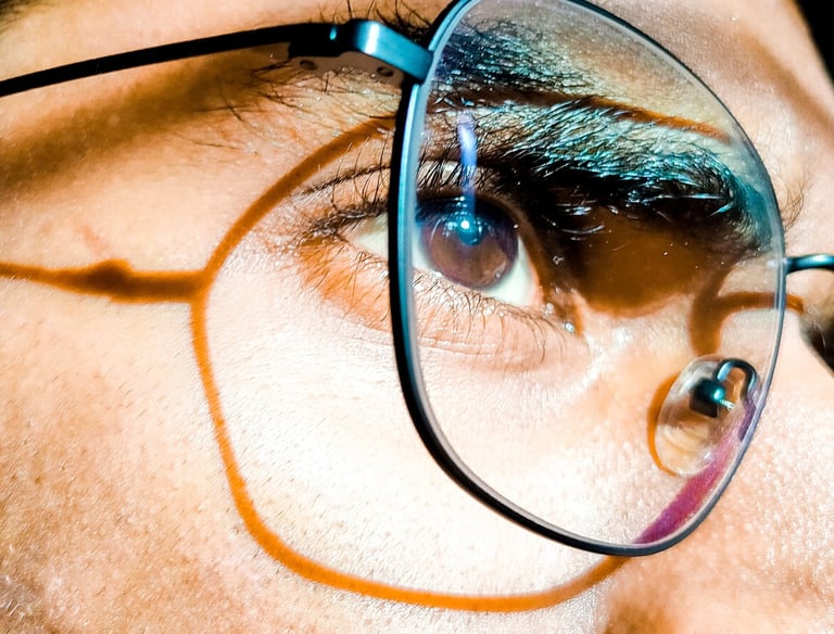 Lenses (single-vision, bifocal, progressive, blue-filter/anti-glare) and contact lenses (daily/monthly, toric) with proper care.